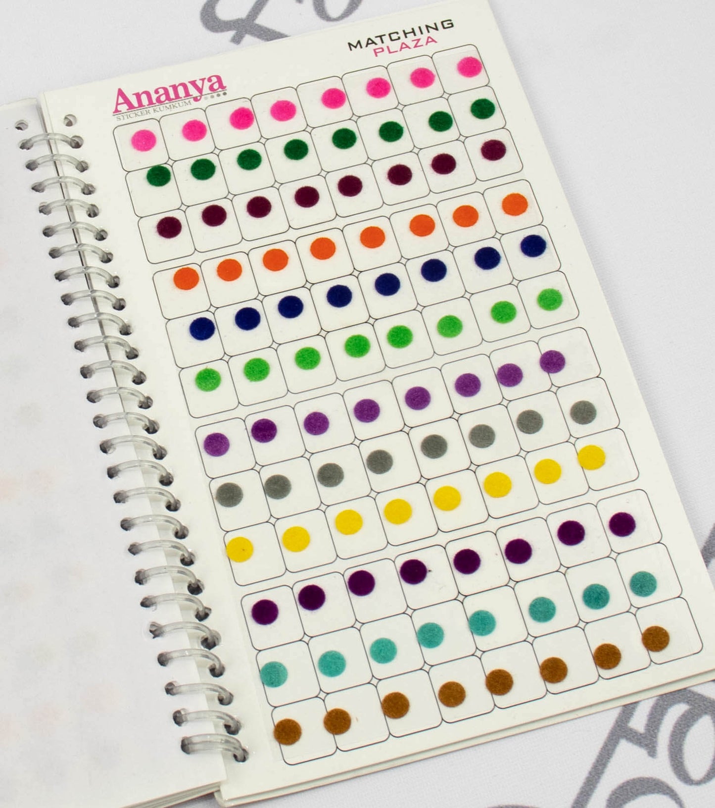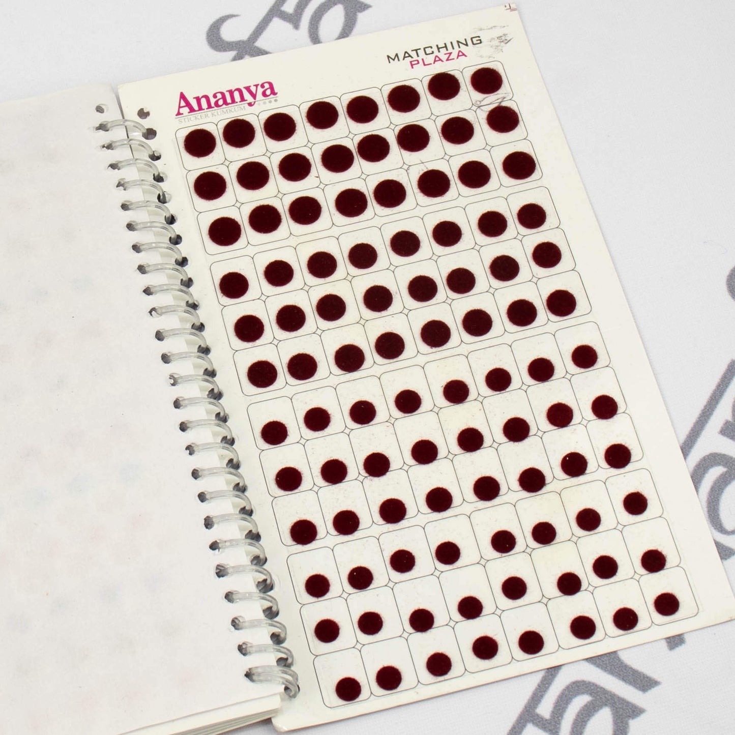 These are velvet bindis. The bindi size is from medium to small in various colours.
