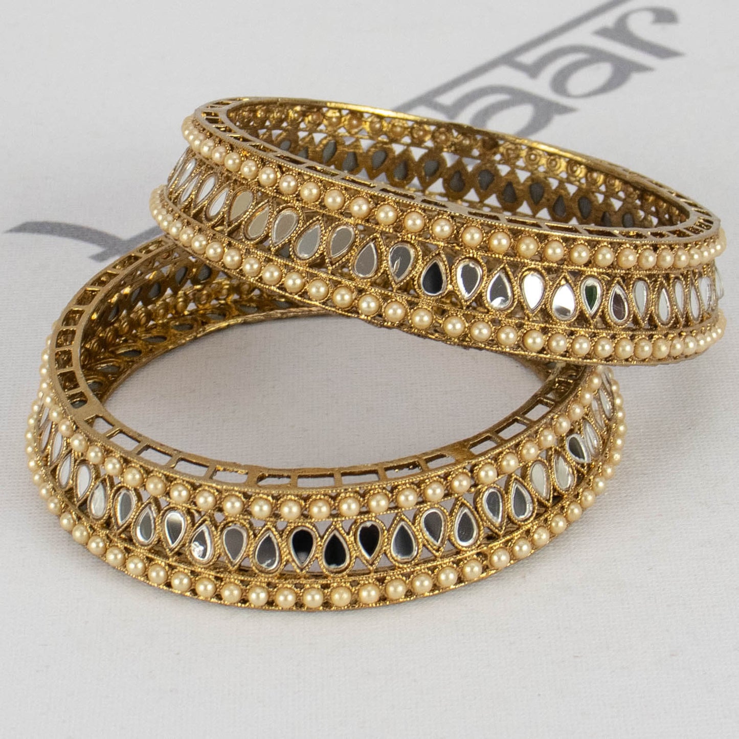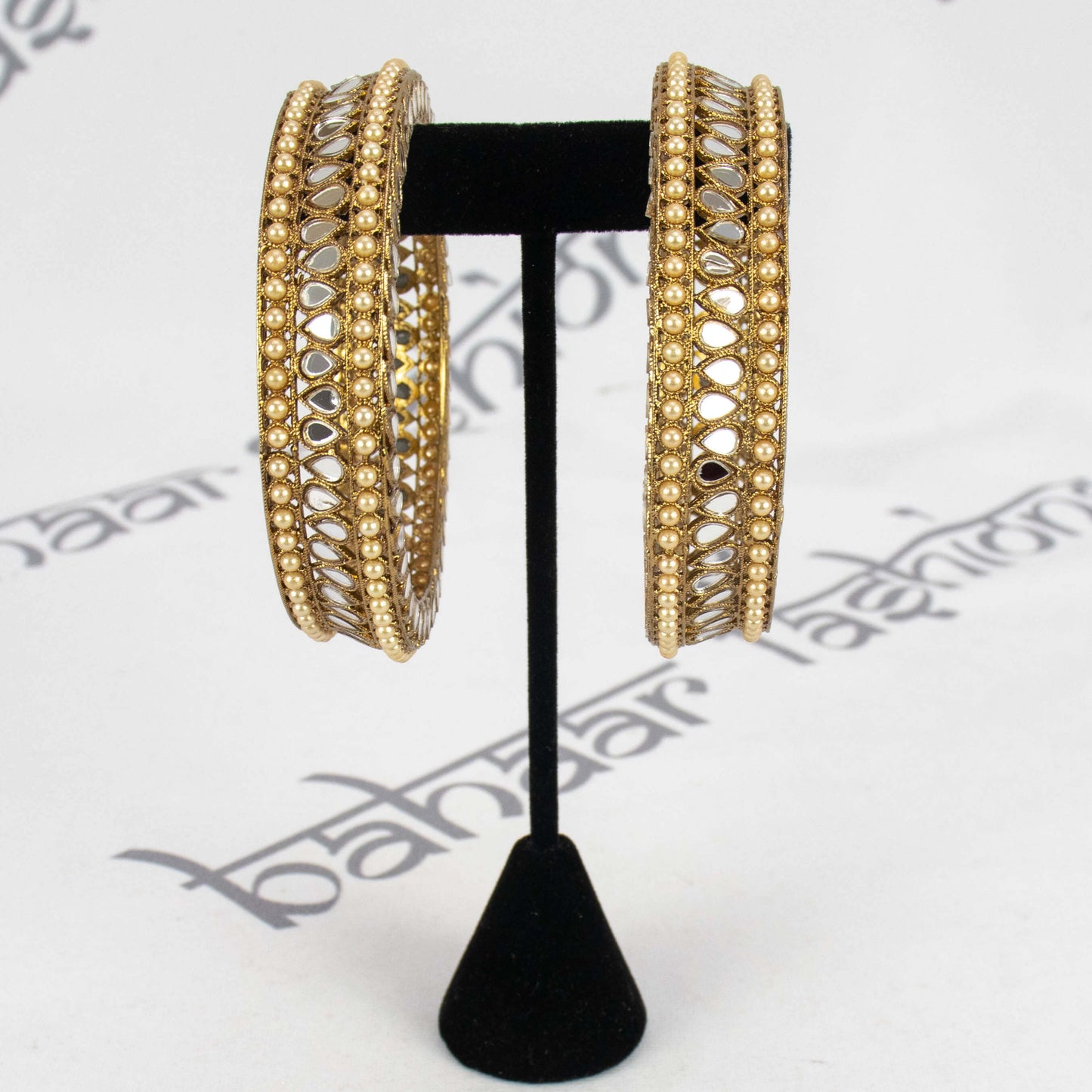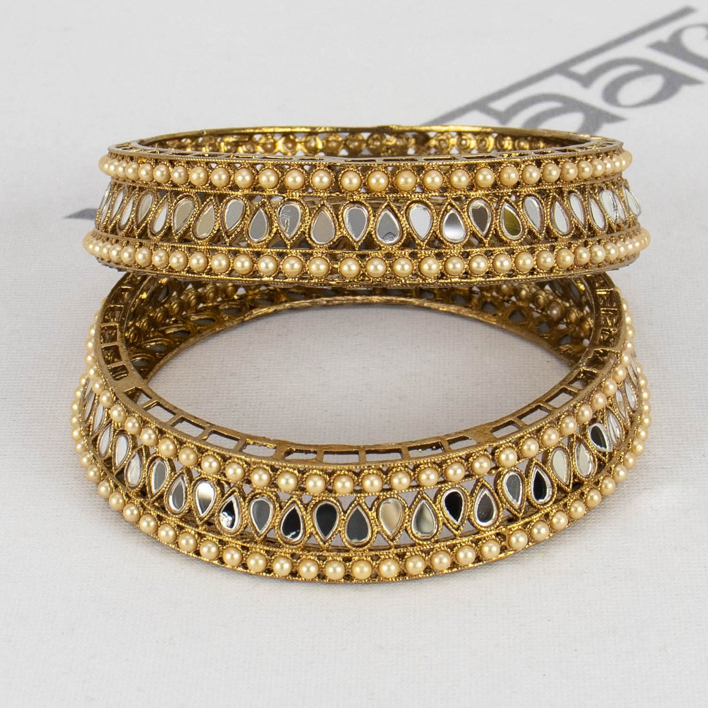 Regular price $12.50Stunning set of 2 antique gold bangles embellished with mirrors and pearls.