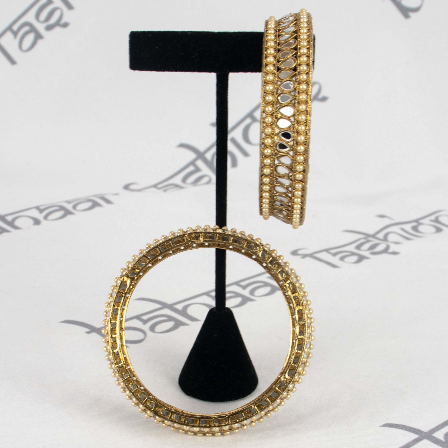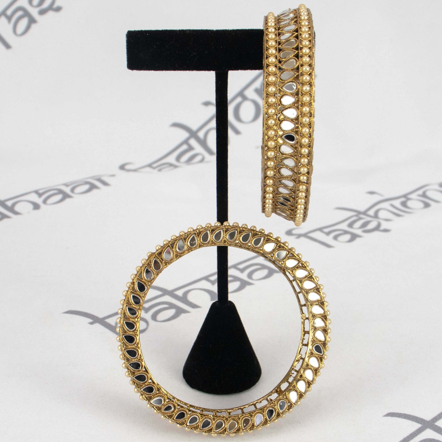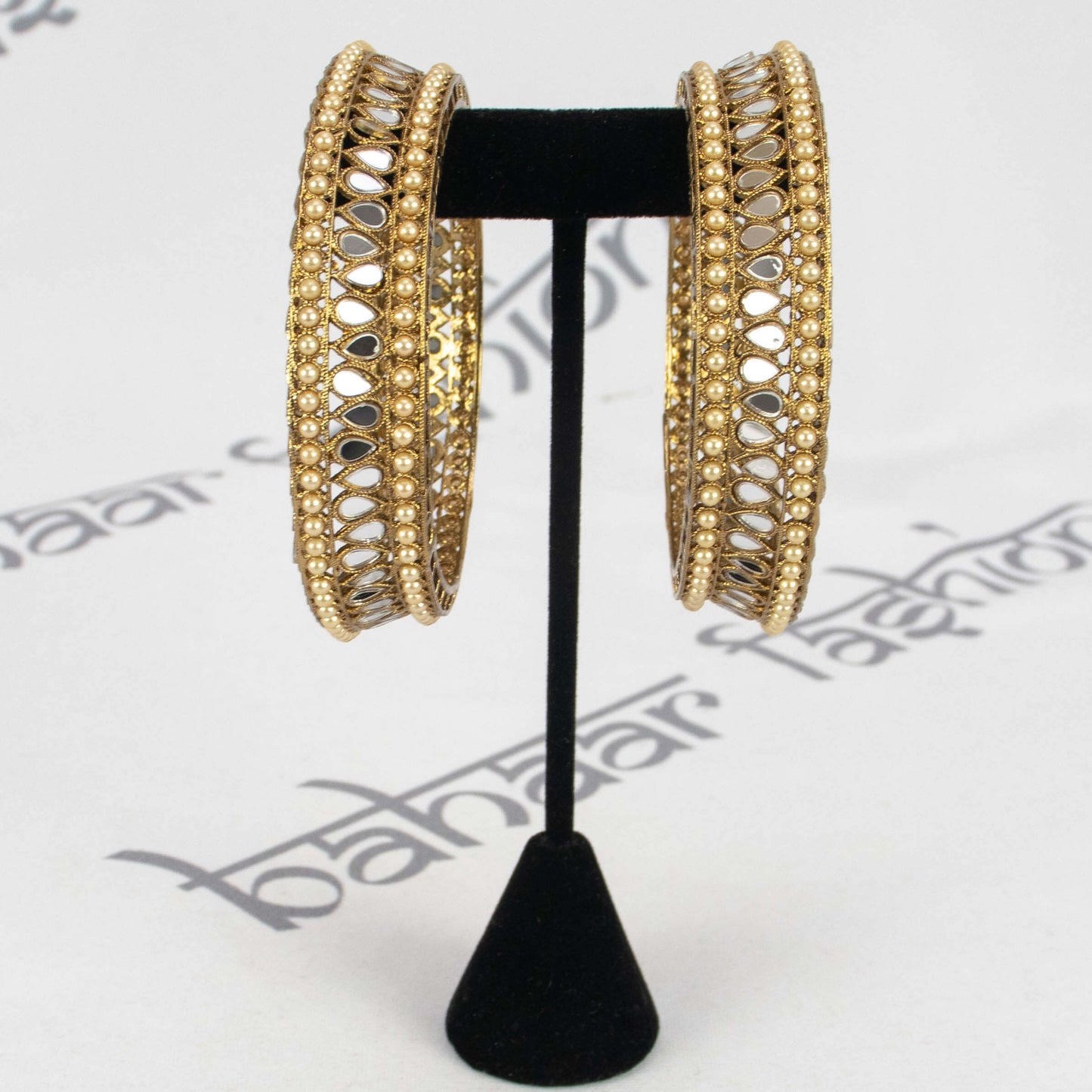 Regular price $12.50Stunning set of 2 antique gold bangles embellished with mirrors and pearls.