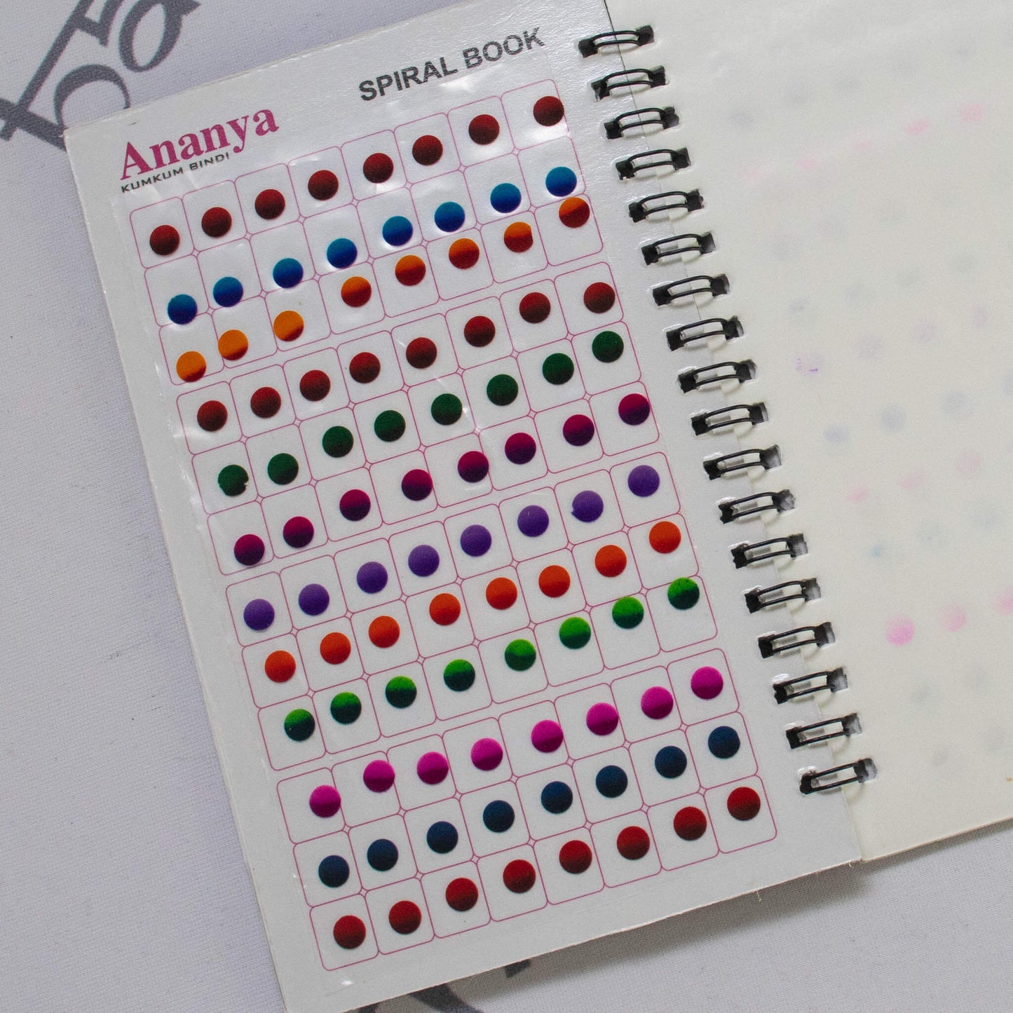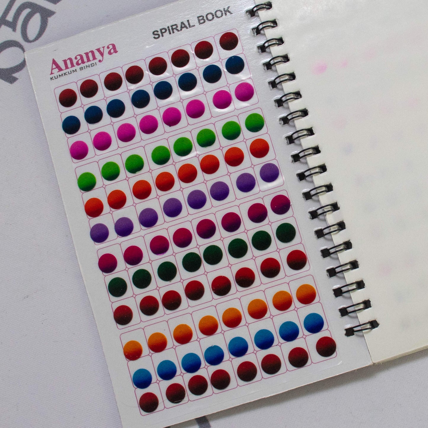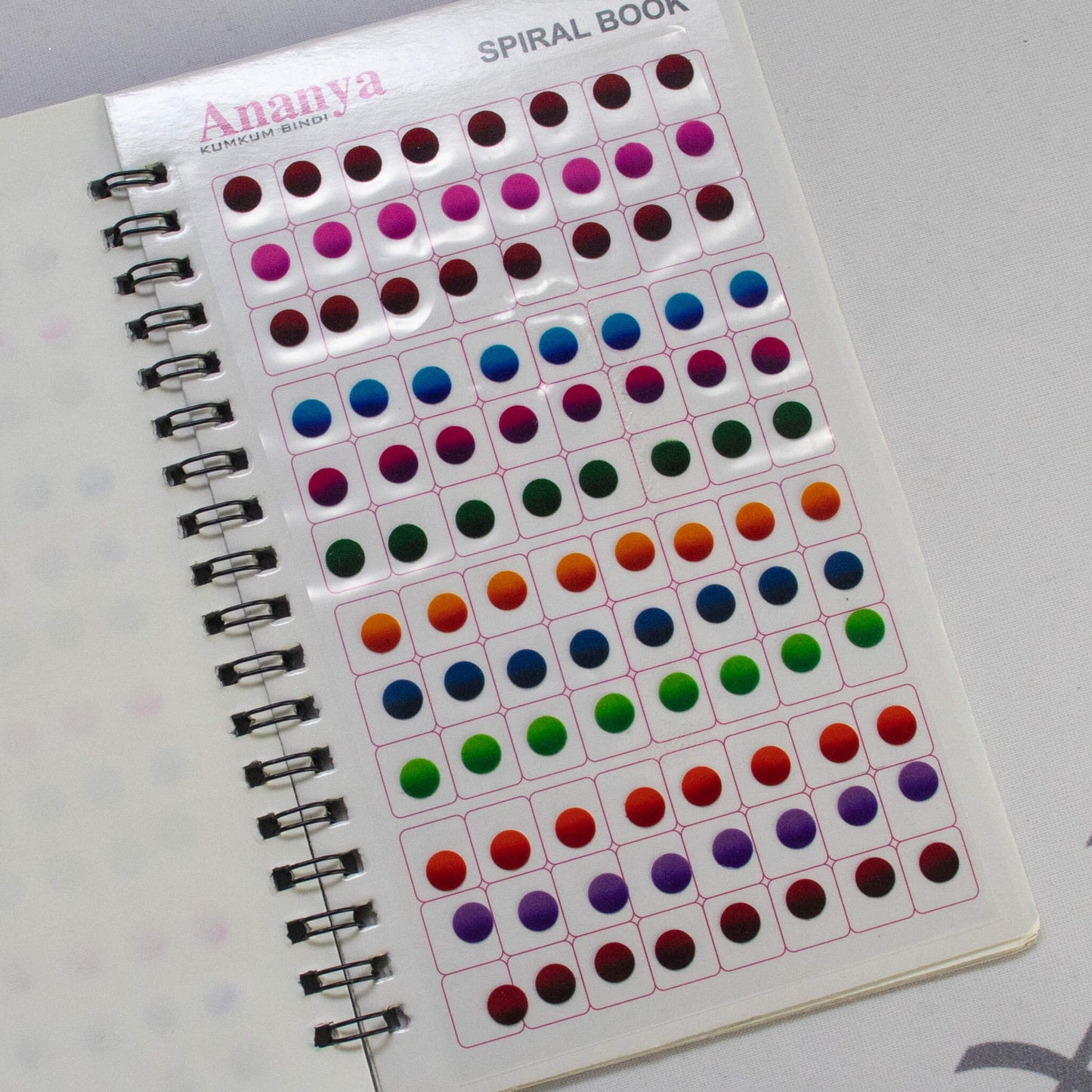 Regular price $7.00Bindi booklet with various colours of bindis. This spiral book carries a total of 960 bindis.
