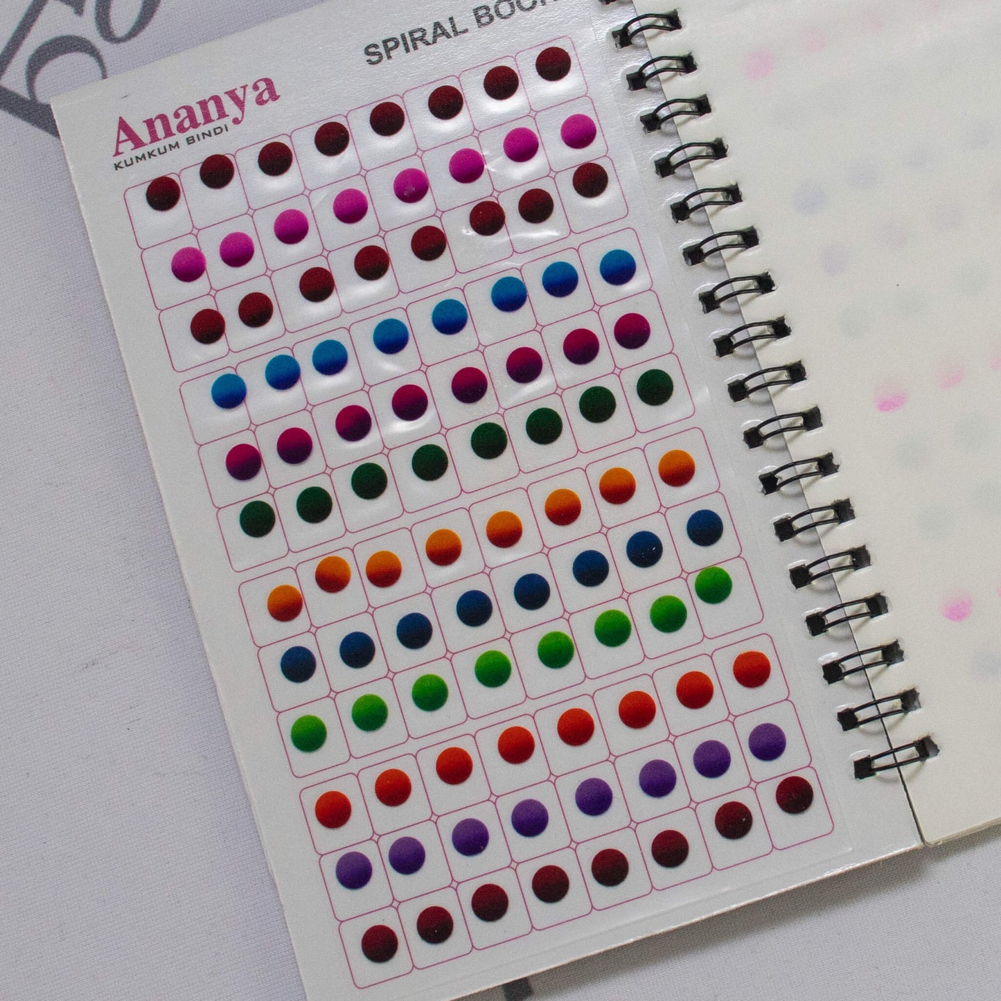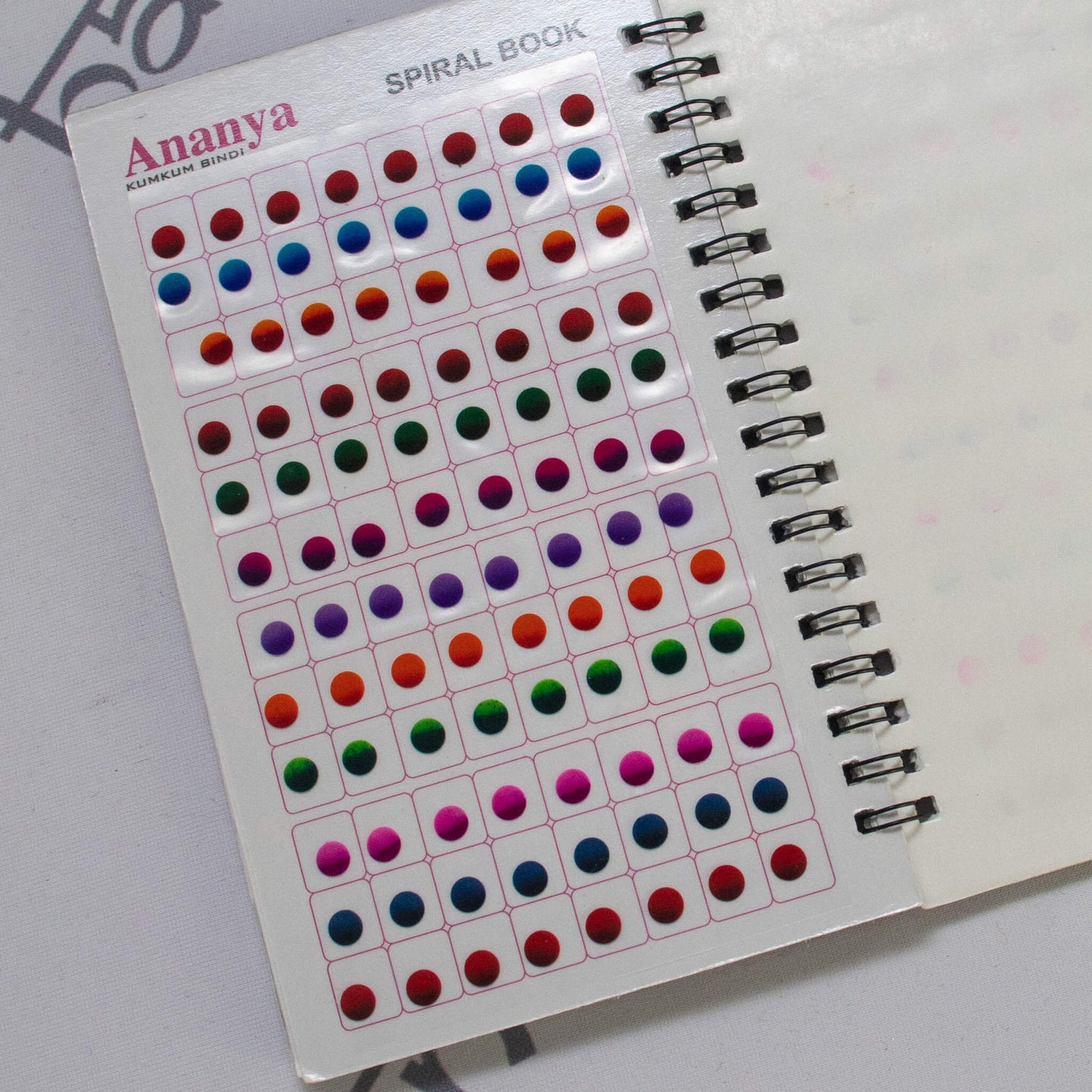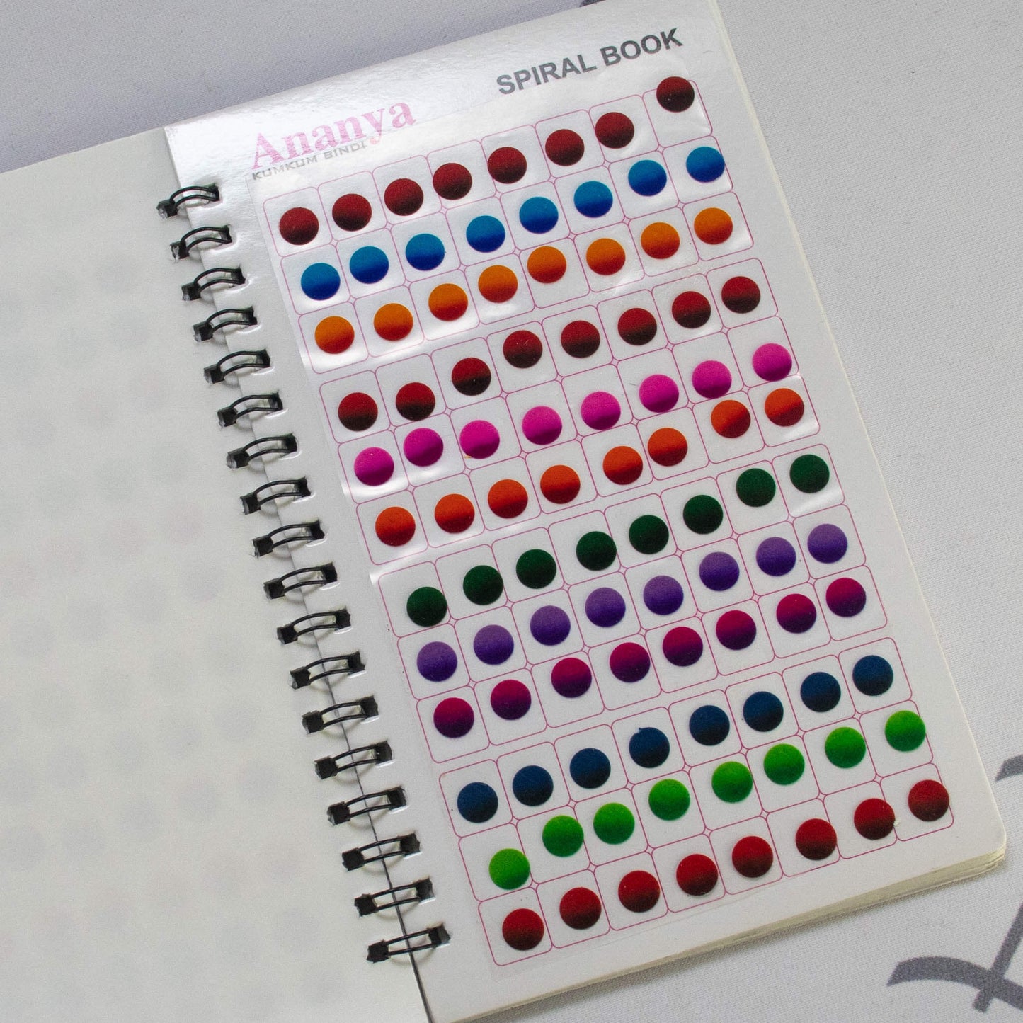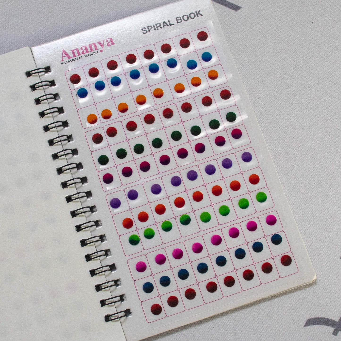 Regular price $7.00Bindi booklet with various colours of bindis. This spiral book carries a total of 960 bindis.