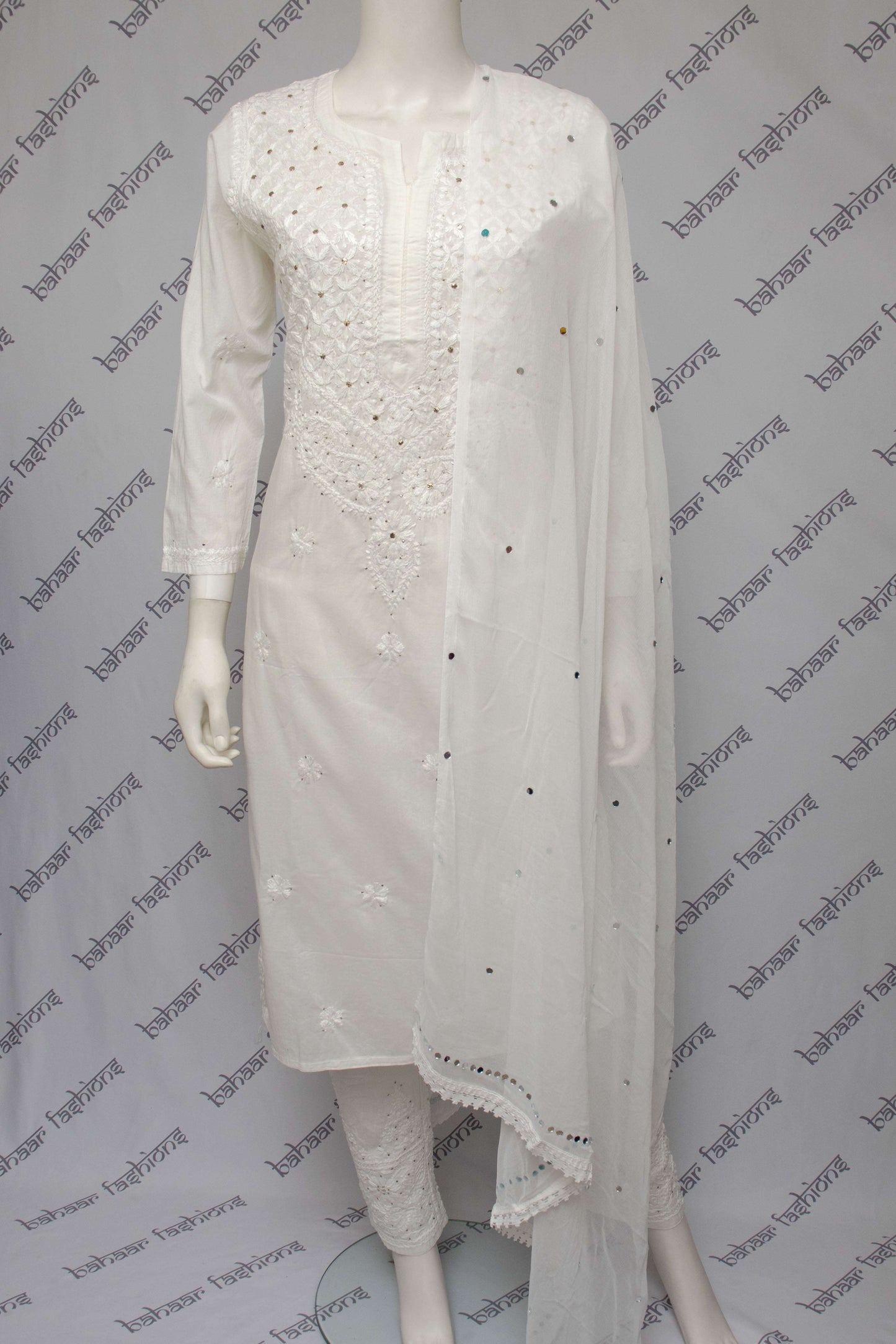 Regular price $20.00White cotton kurti embellished with mukaish (metallic embroidery) work and lucknowi chikankari embroidery.