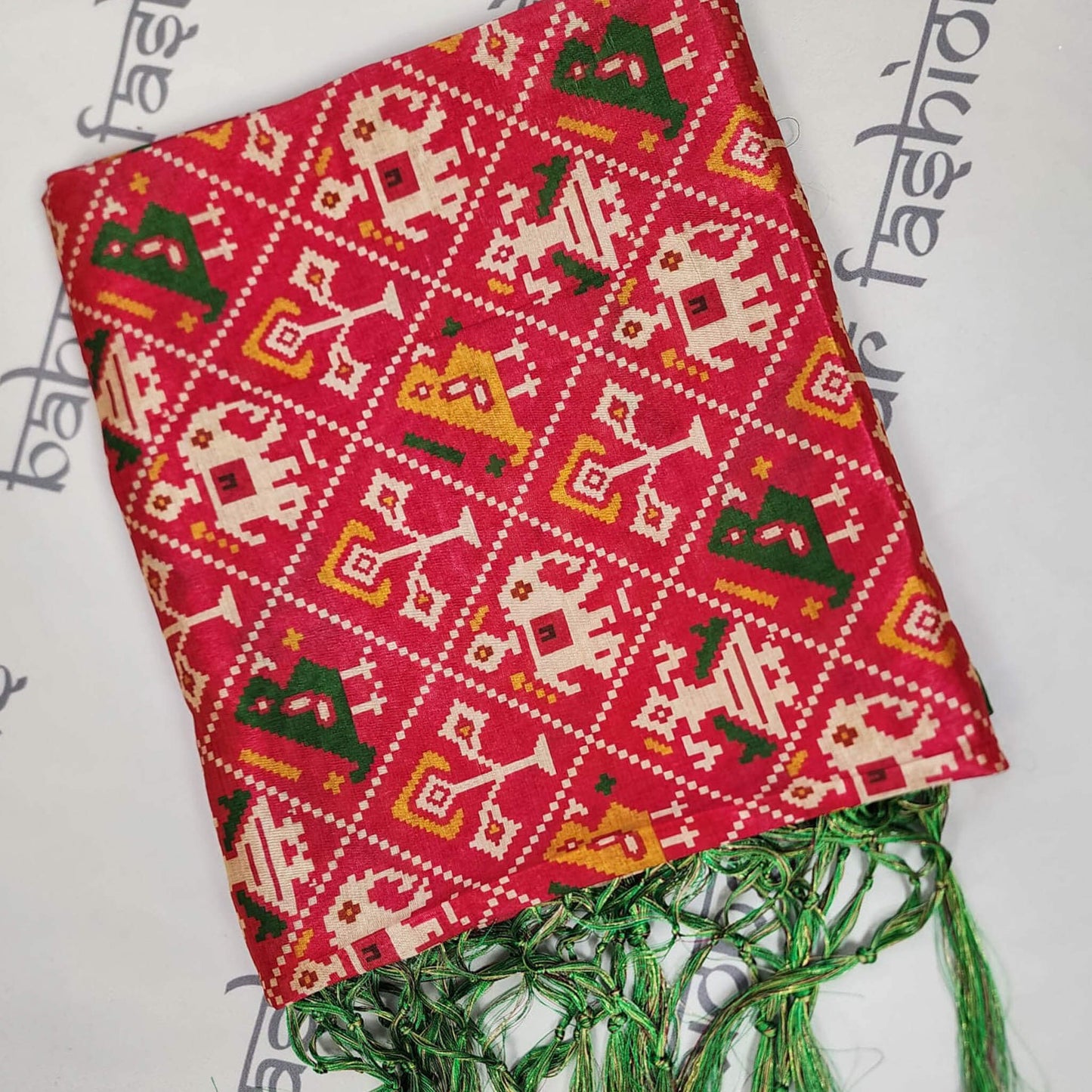 Patola is an ethnic pattern that is digitally printed on the fabric to capture the traditional look.