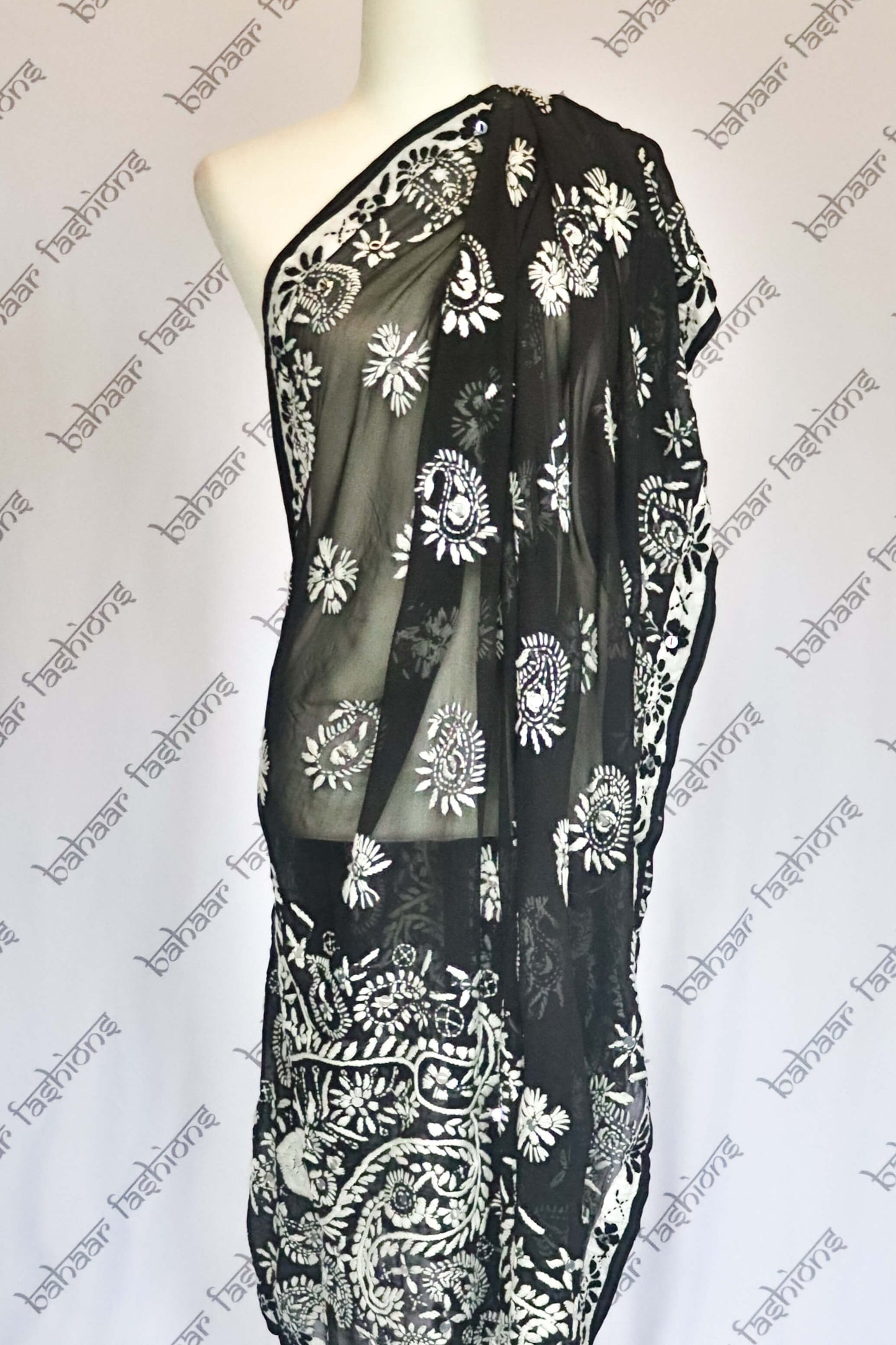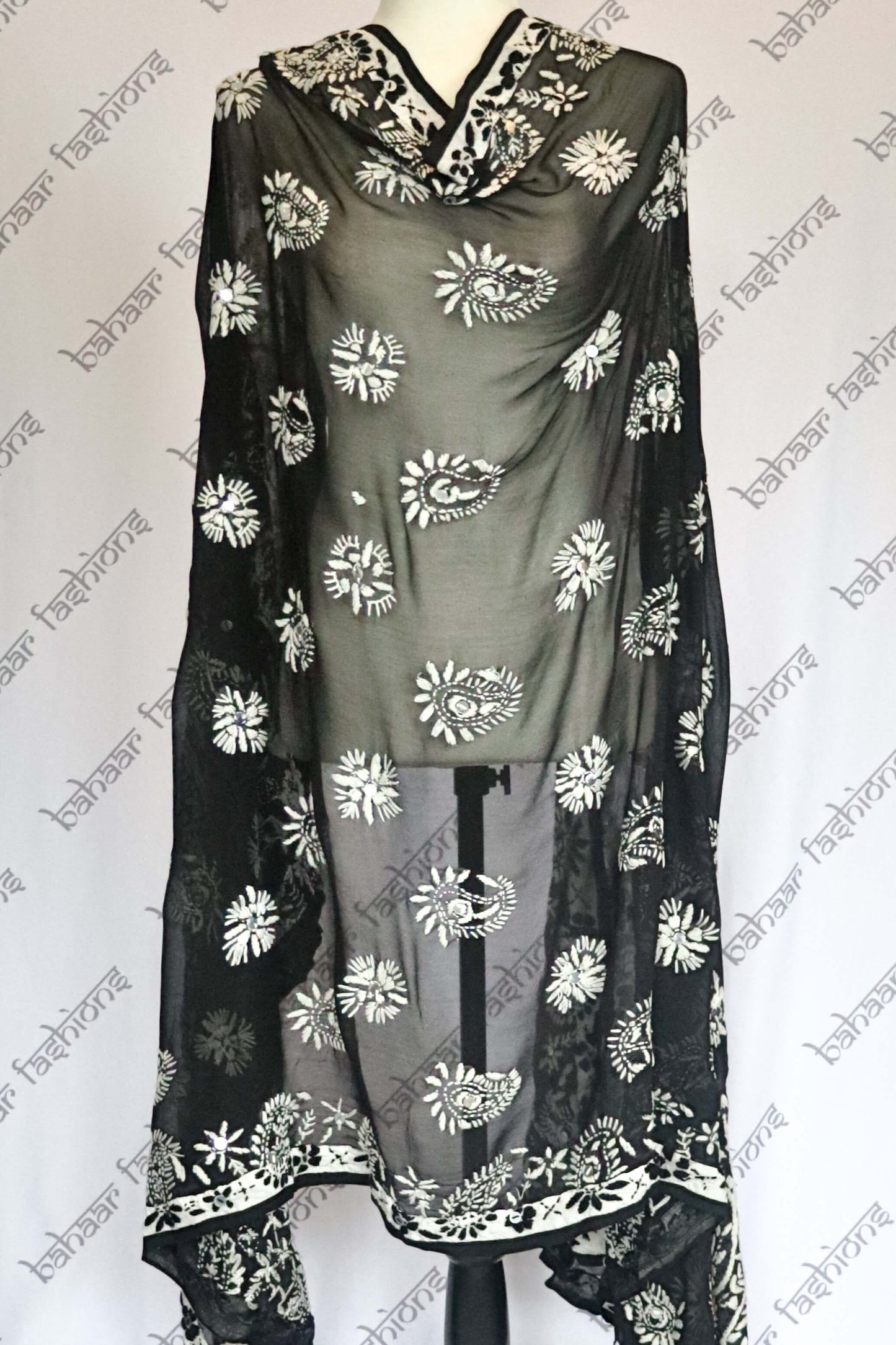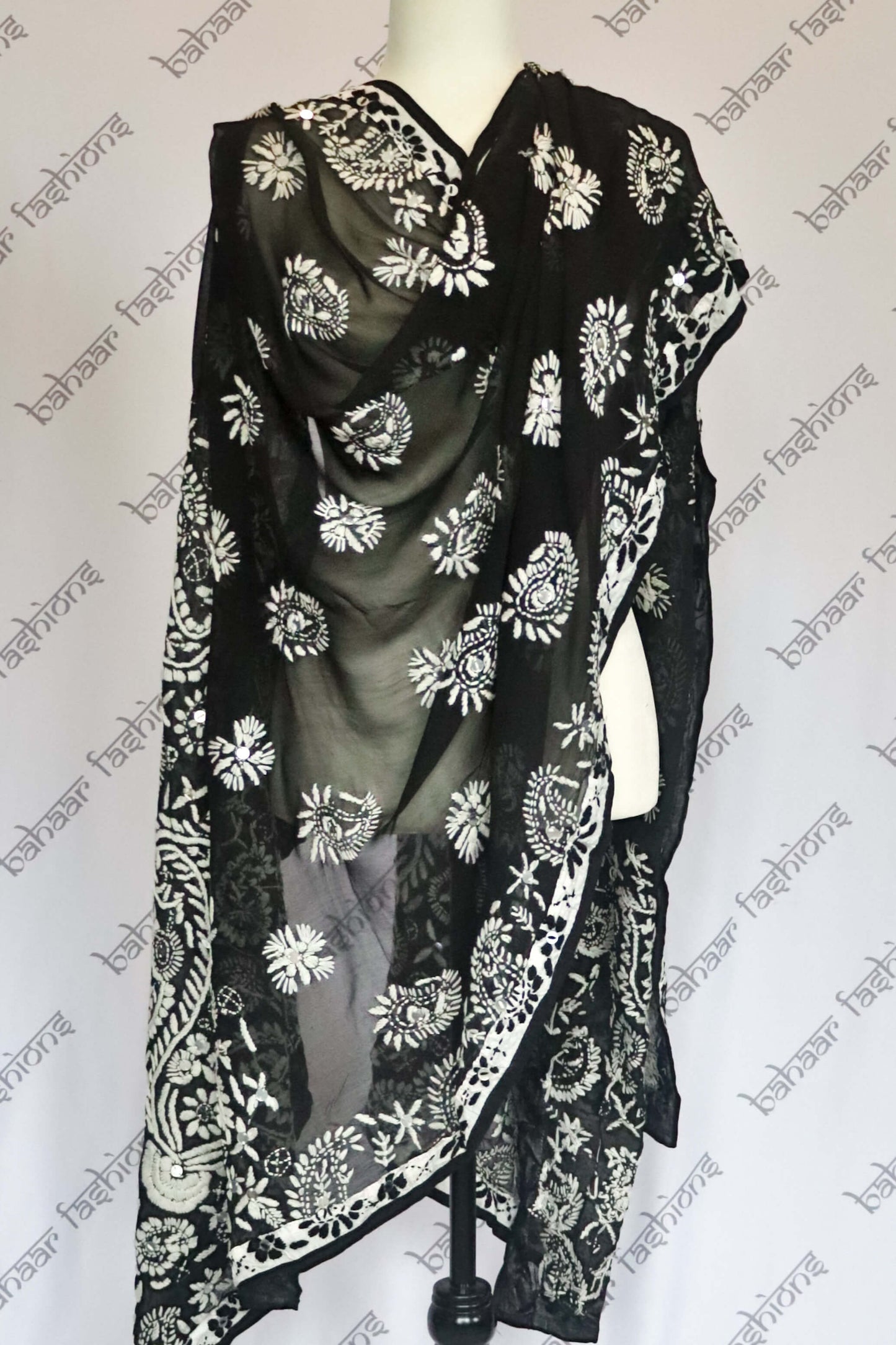 Regular price $55.00Stunning black georgette dupatta, handcrafted with intricate white thread embroidery. A lovely addition to your dupatta collection.