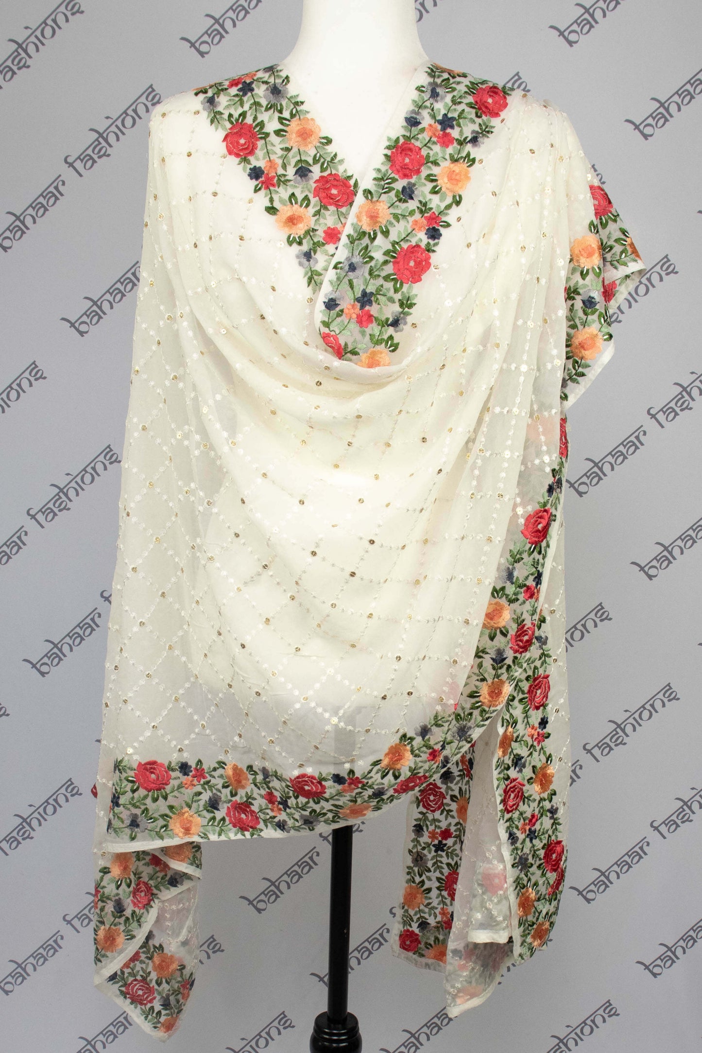 Regular price $55.00Georgette dhuppata with floral thread embroidery and sequins work.