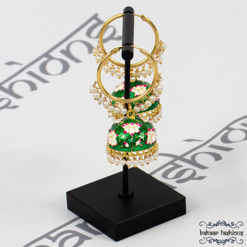 Regular price $8.50Green meenakari jumki bali earrings embellished with white pearls.