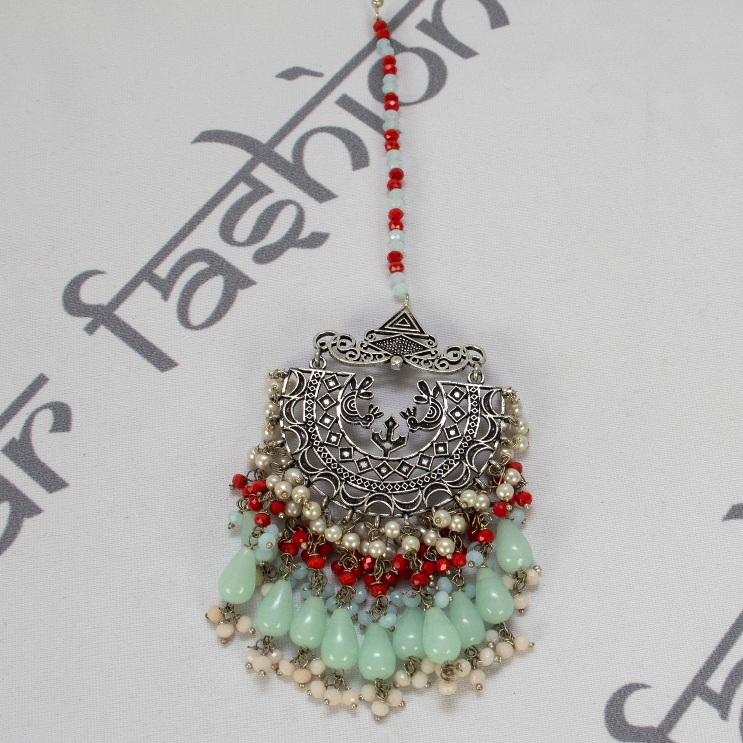 Regular price $15.00Classy and trendy oxidized tikka set beautifully crafted with a combination of frosty mint, red, and white beads.