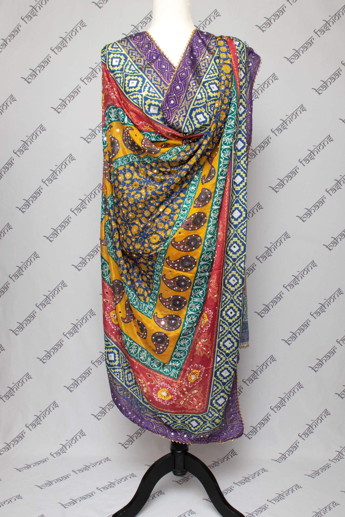 Regular price $25.00Stunning handcrafted chinnon multicoloured digital printed dupatta embellished with exquisite mirror and pearl work. This gorgeous dupatta can be paired with many outfits including a salwar suit, pajamai suit, sharara, and lenga. Perfect dupatta for any wedding event.