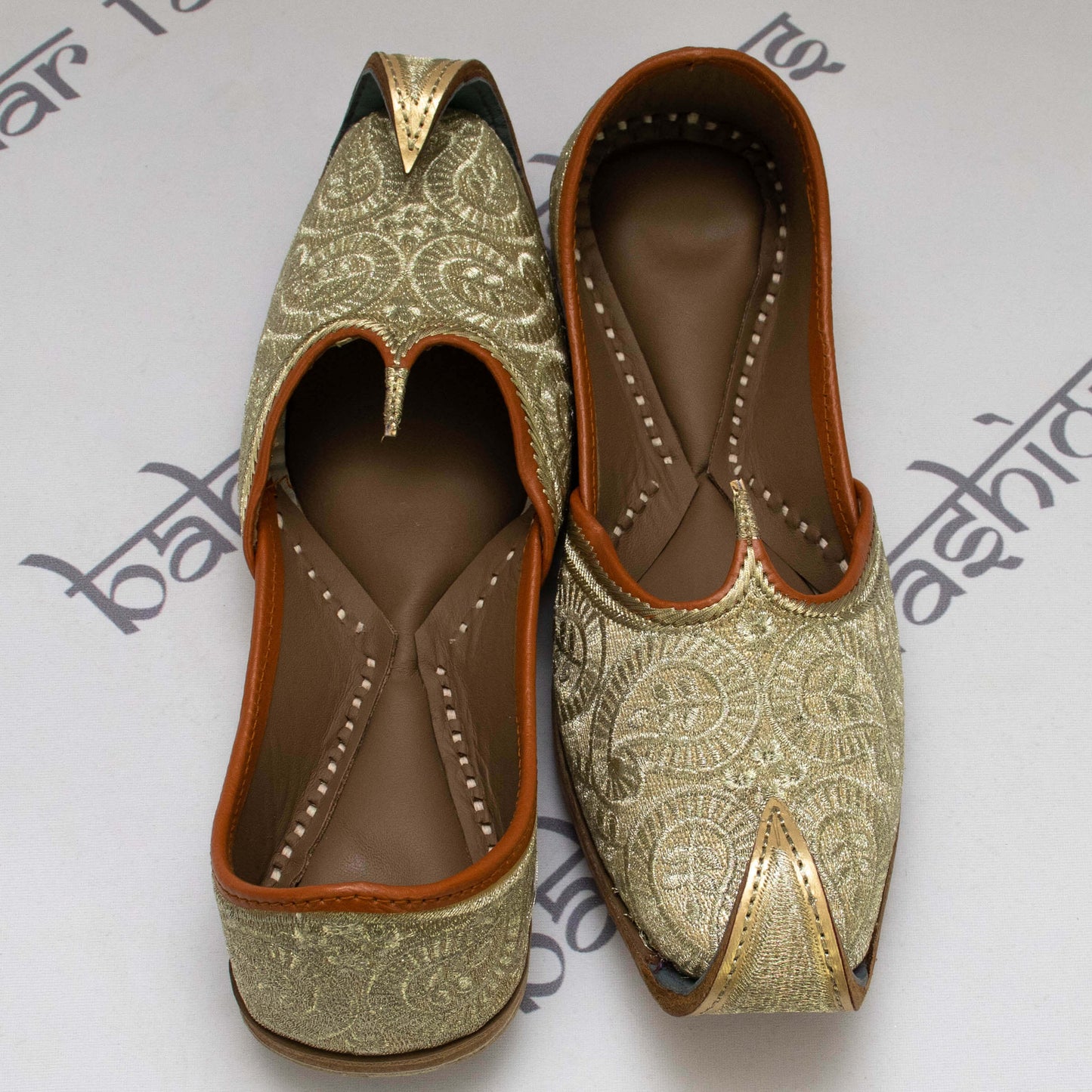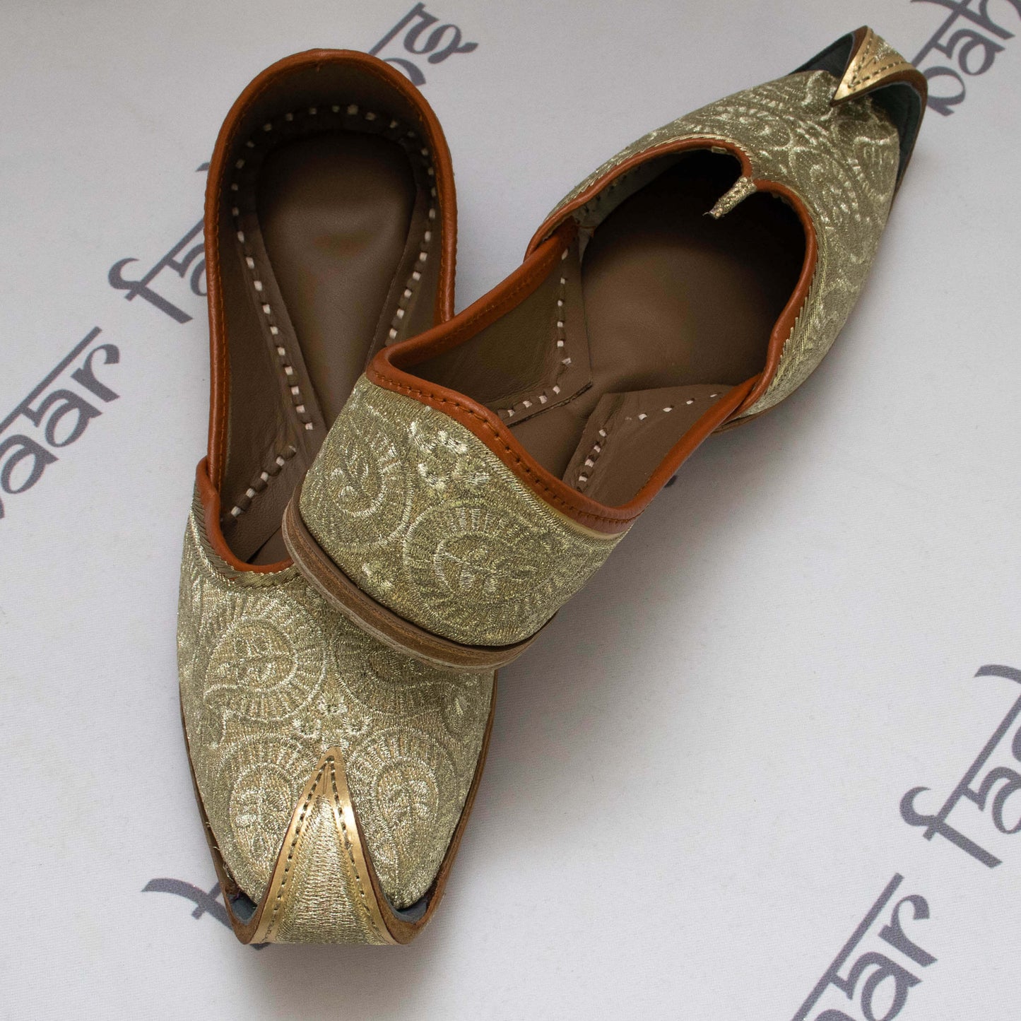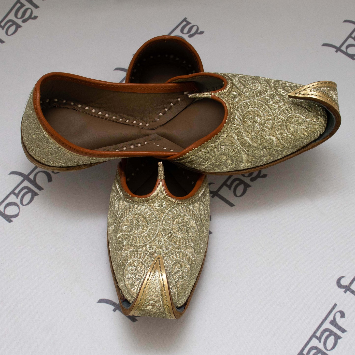 Regular price $12.50Men's traditional golden khosa jutti embellished with intricate tilla work. The interior is made of genuine leather with a double cushion making the jutti very comfortable to wear.