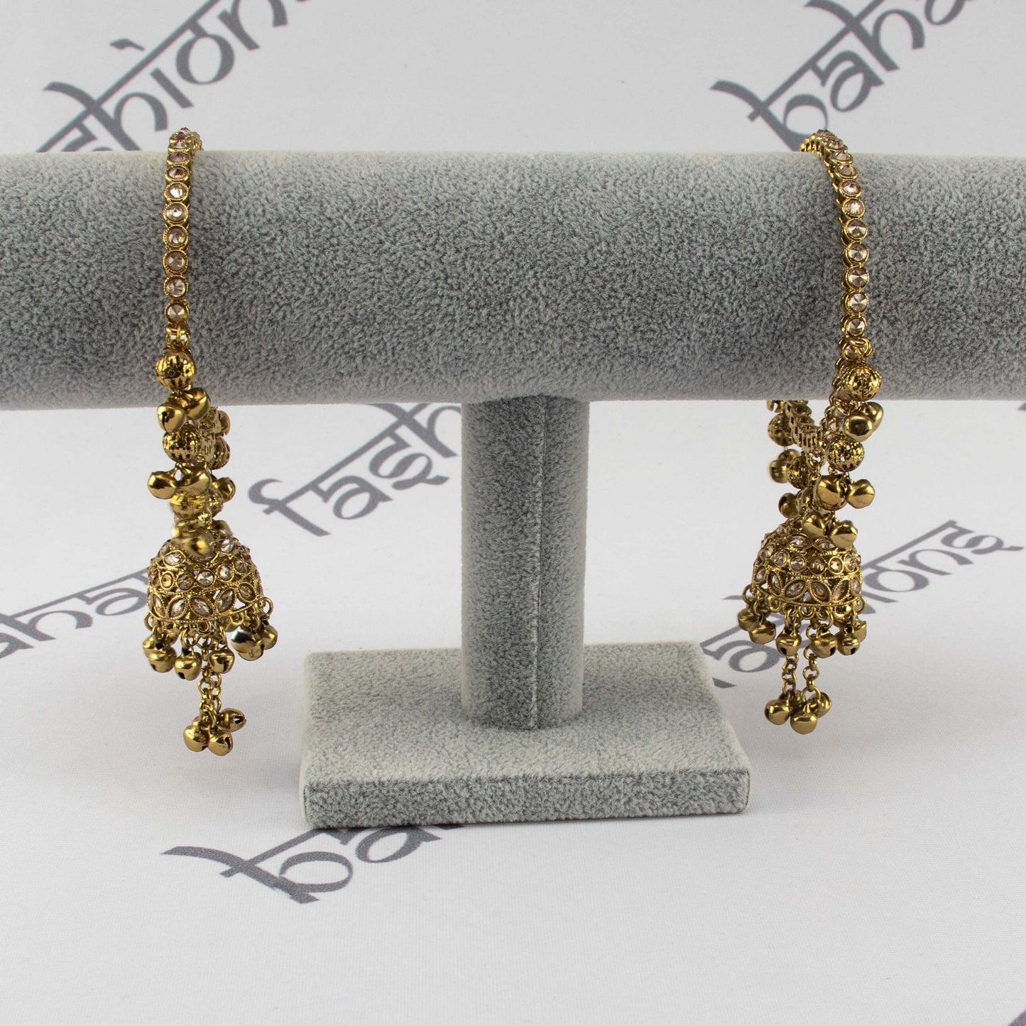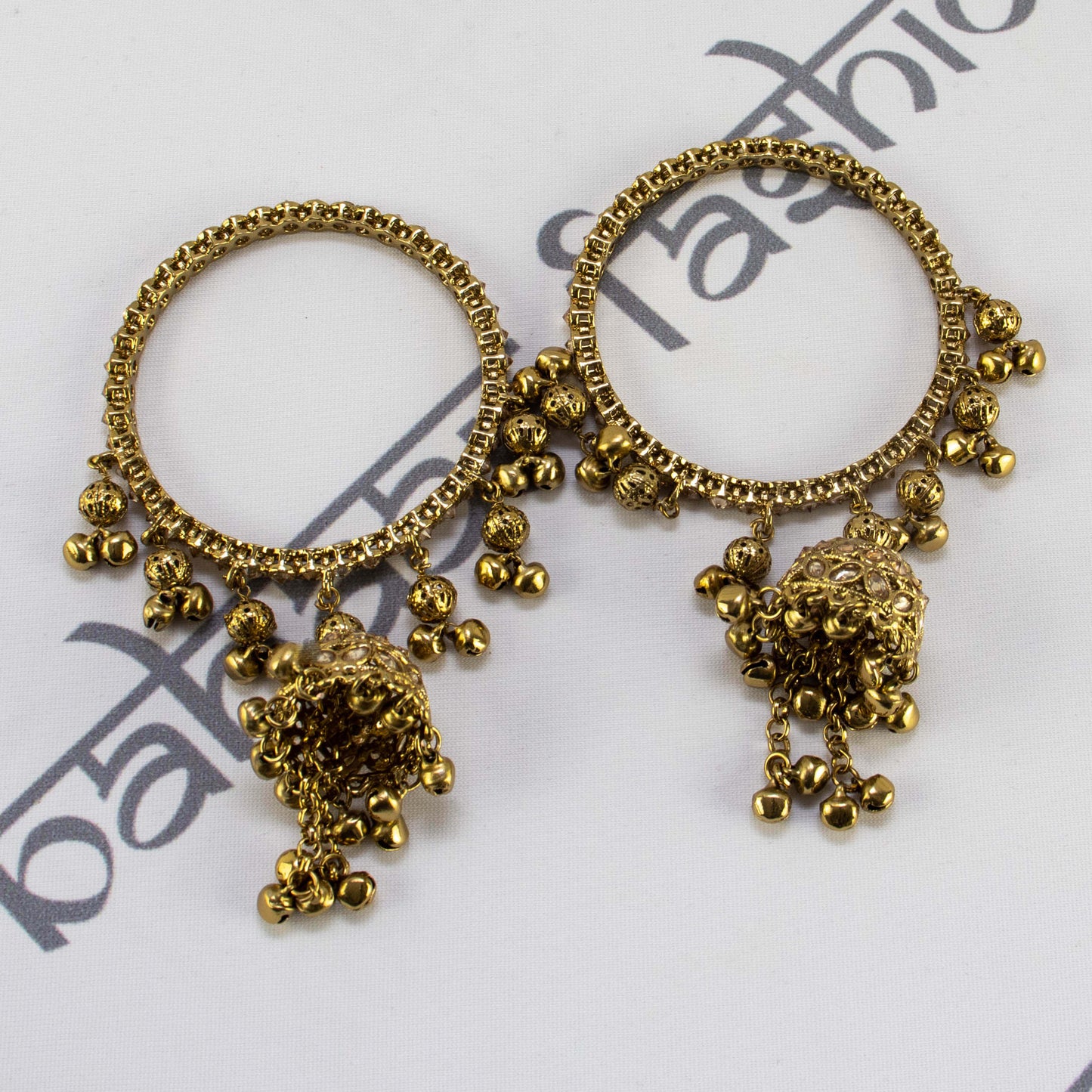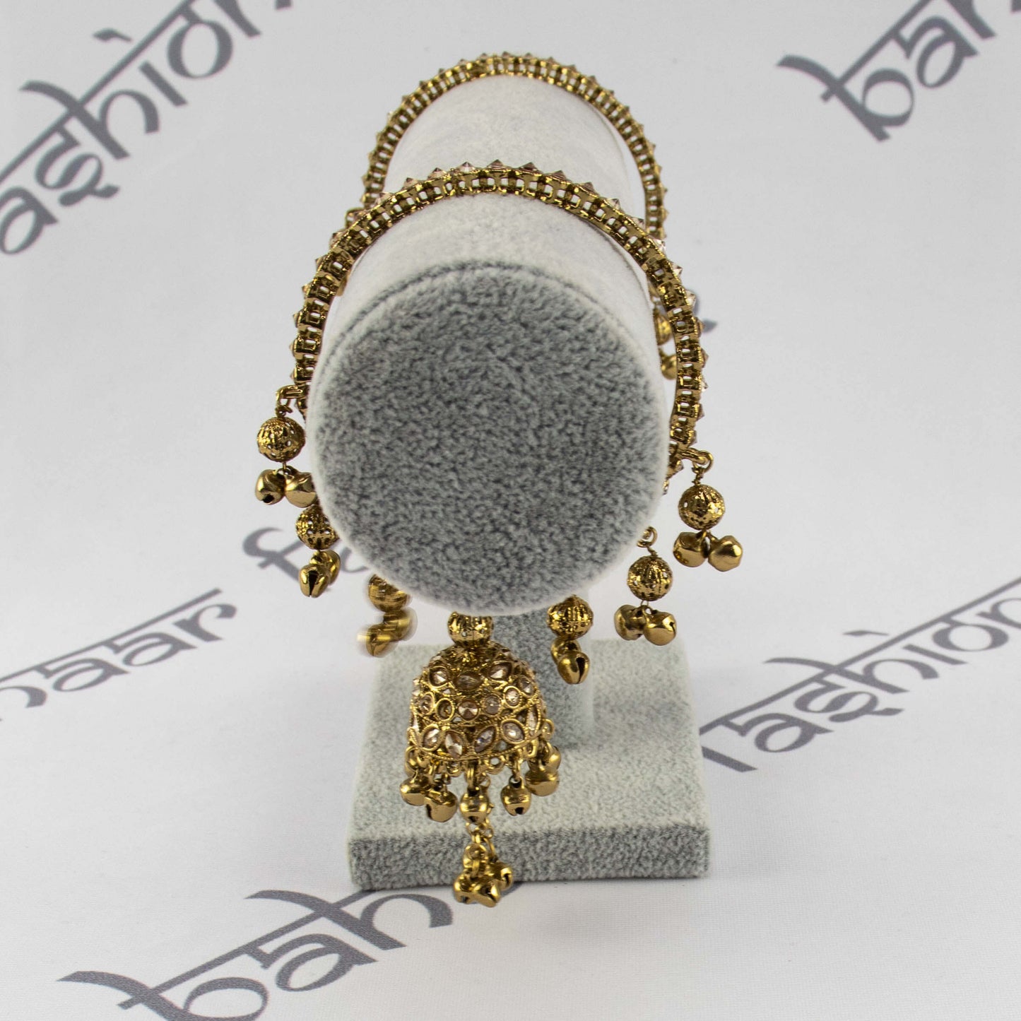 Regular price $18.00Beautiful antique gold jhumki bangles decorated with polki stones and ghungroo (metal bells).