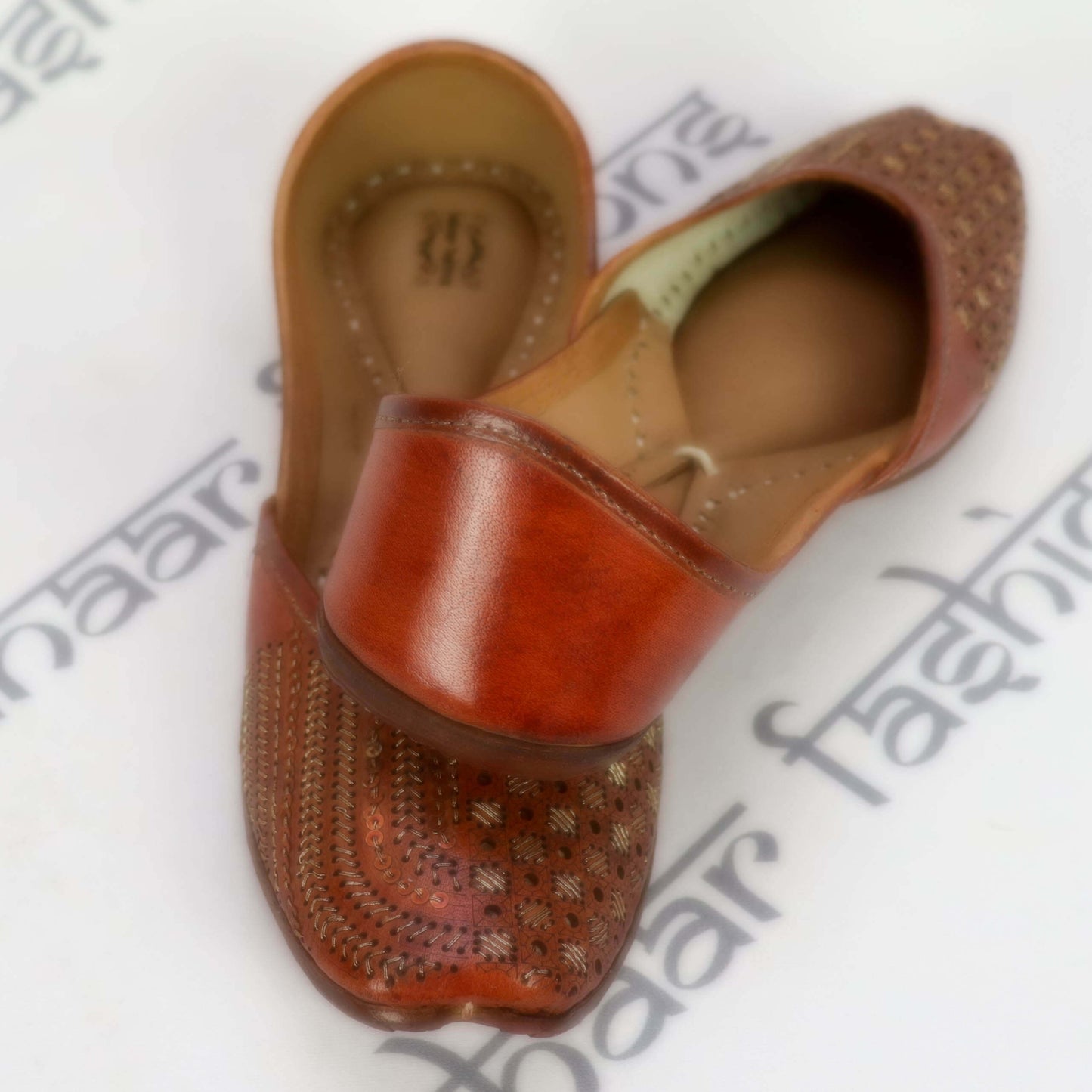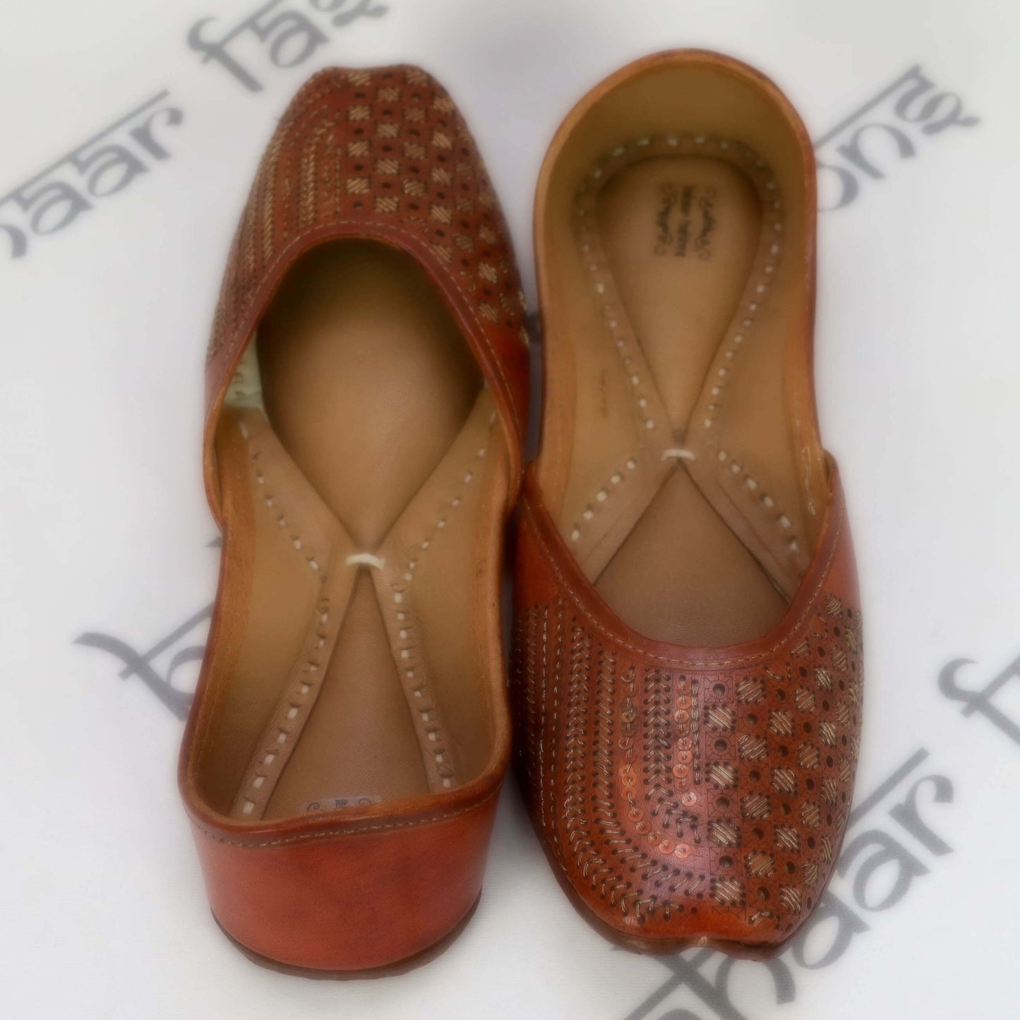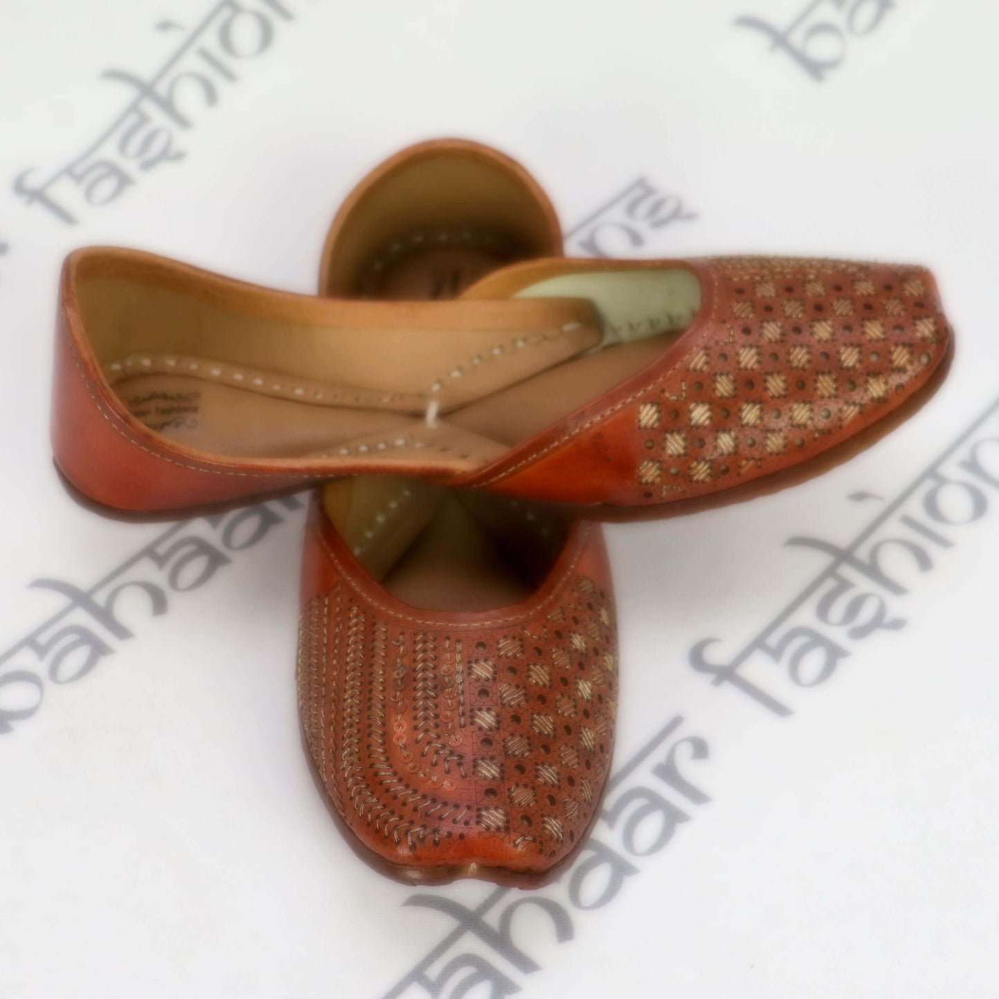 Regular price $10.00Casual punjabi jutti embellished with golden thread work. The interior is made of genuine leather with a double cushion making the jutti very comfortable to wear.