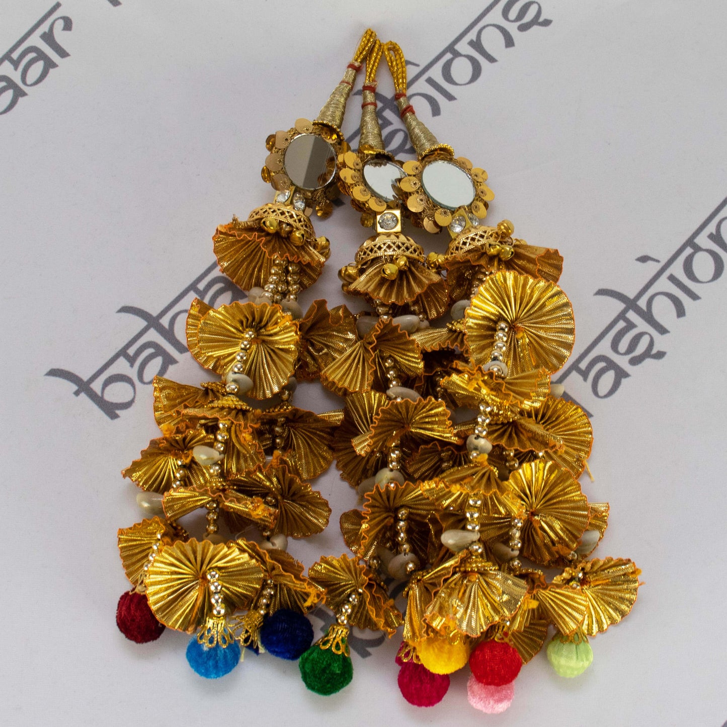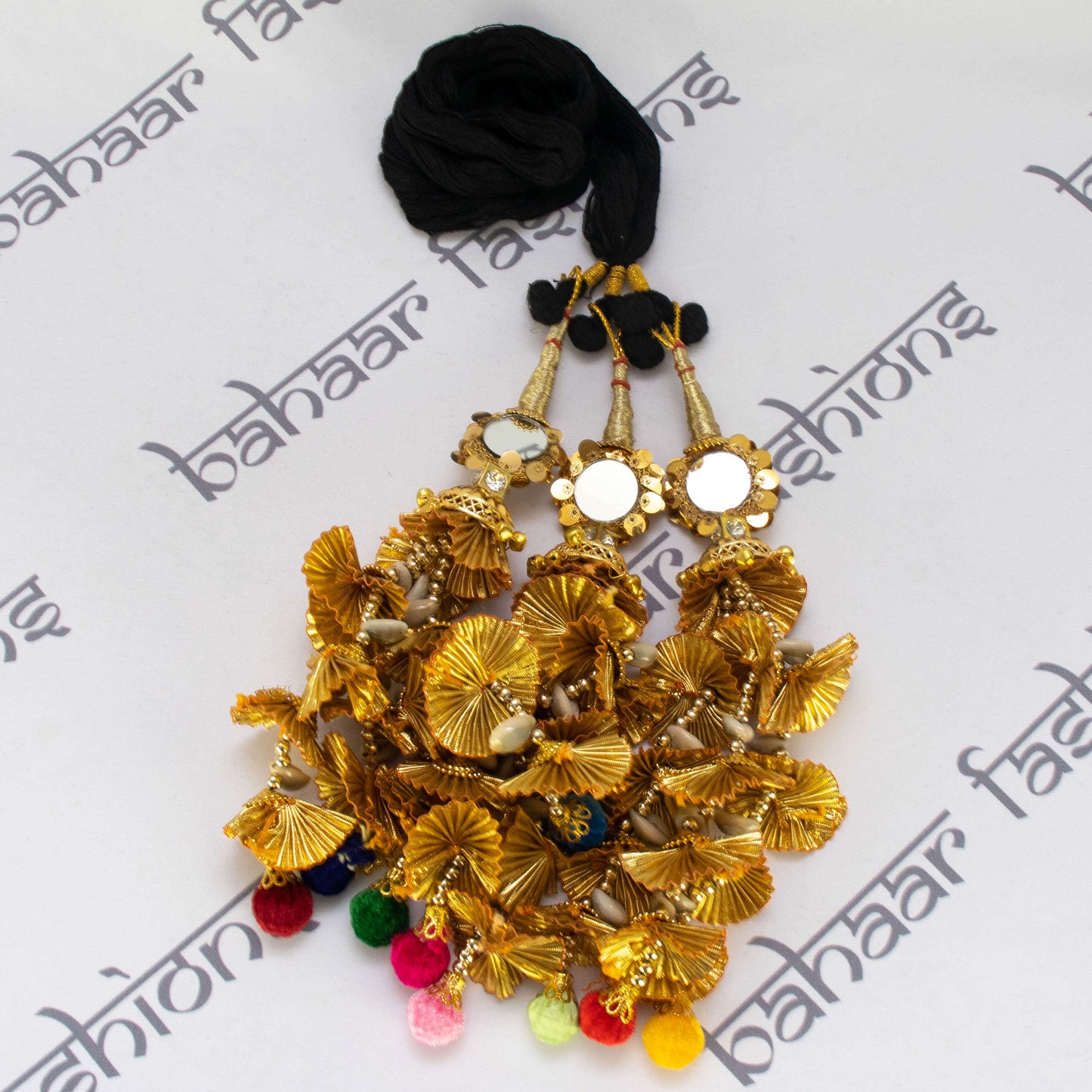 Regular price $20.00Beautiful gotta paranda embellished with pompoms/latkans, mirrors, sea shells, and ghungroos (metal bells).