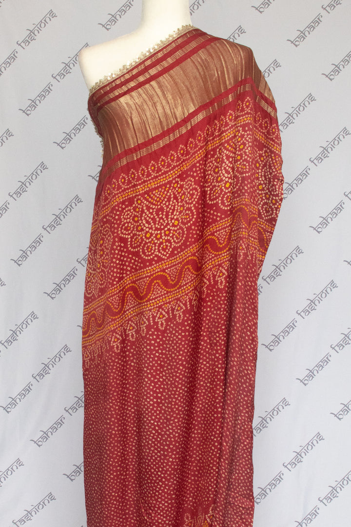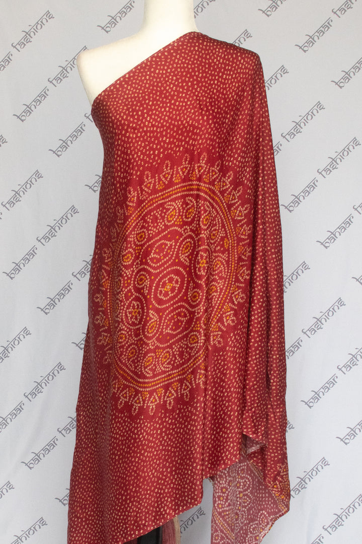Crafted in luxurious Pure Gaji Silk, this red bandani dupatta is a true heirloom. Finished with rich zari borders that add a touch of elegance and timeless charm.