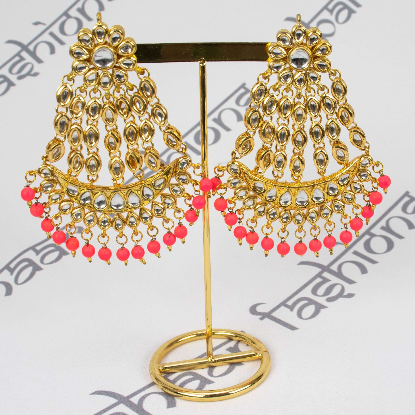 Regular price $12.00Traditional passa style earrings embellished with kundan stones and neon pink beads.