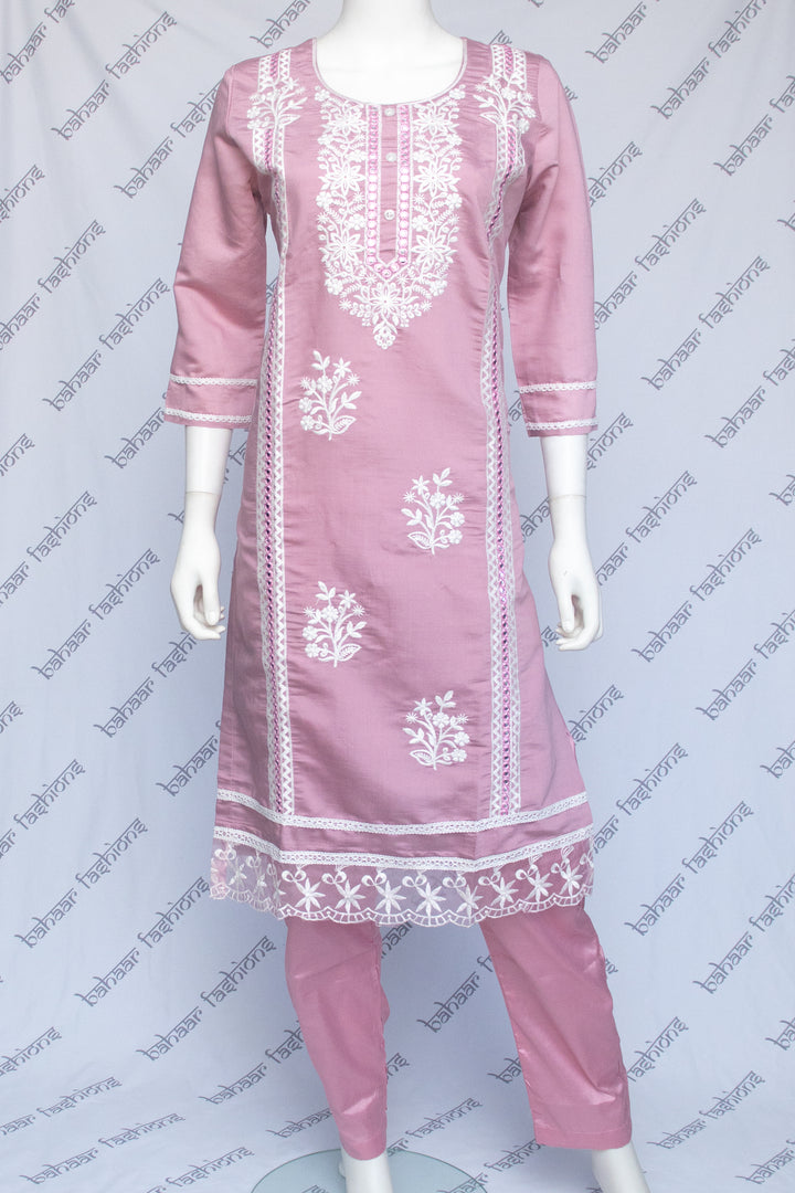 Elegant cotton suit embellished with delicate floral thread embroidery and subtle foil work. A perfect blend of simplicity and charm, ideal for graceful everyday wear and occasional wear.