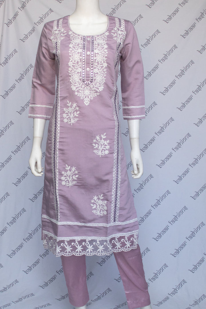 Elegant cotton suit embellished with delicate floral thread embroidery and subtle foil work. A perfect blend of simplicity and charm, ideal for graceful everyday wear and occasional wear.