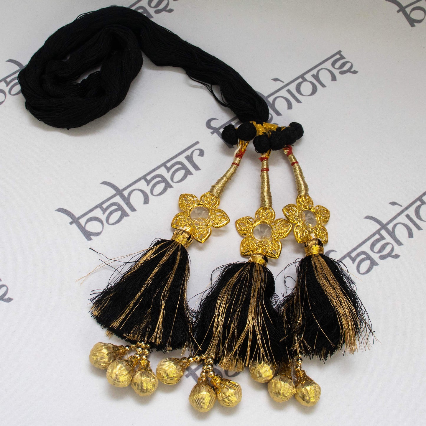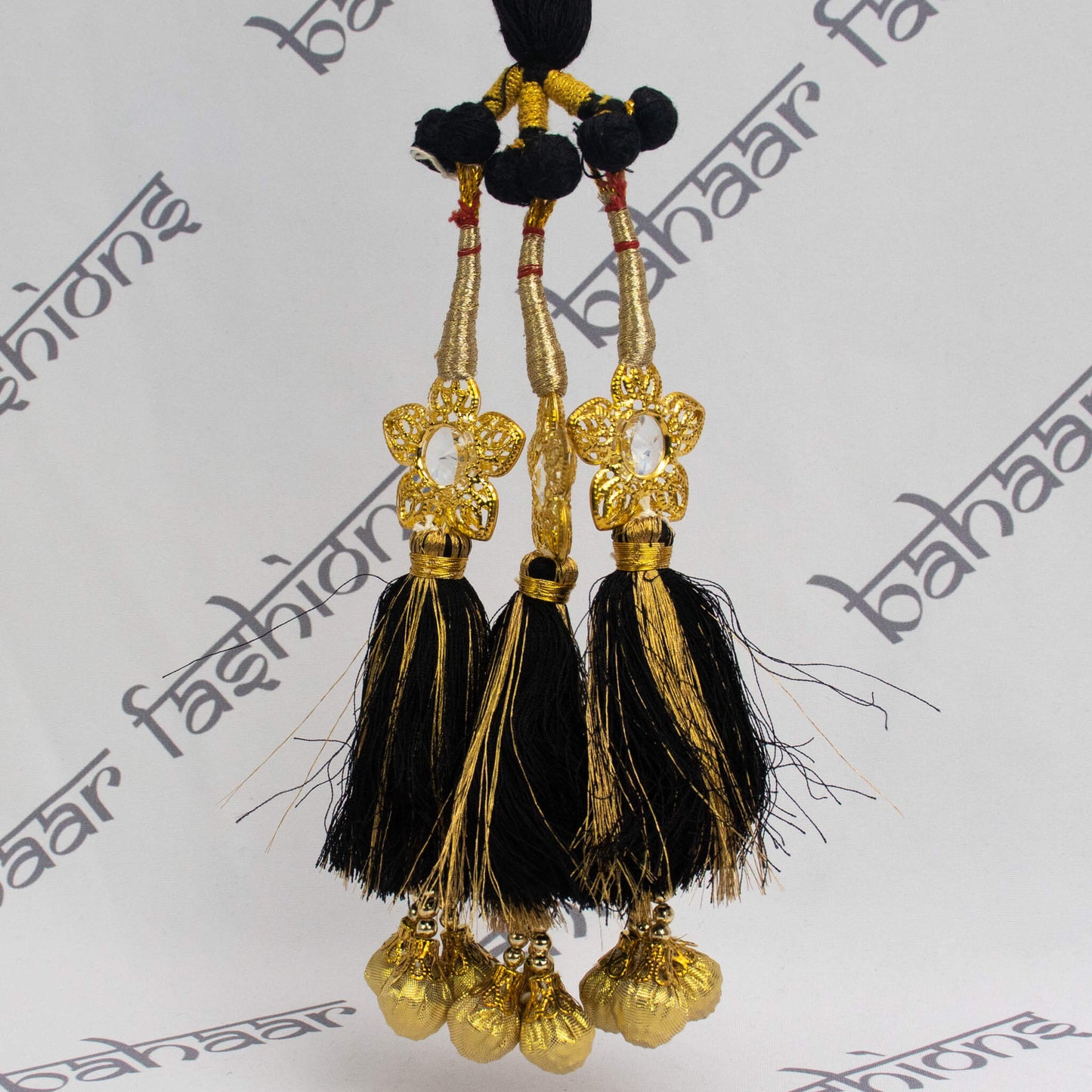Paranda/Parandi is a women's hair ornament/accessory made of multicolored or solid colour silk threads and decorated with colourful ornamental tassels. Paranda/Parandi is worn by braiding the black thread into the hair.